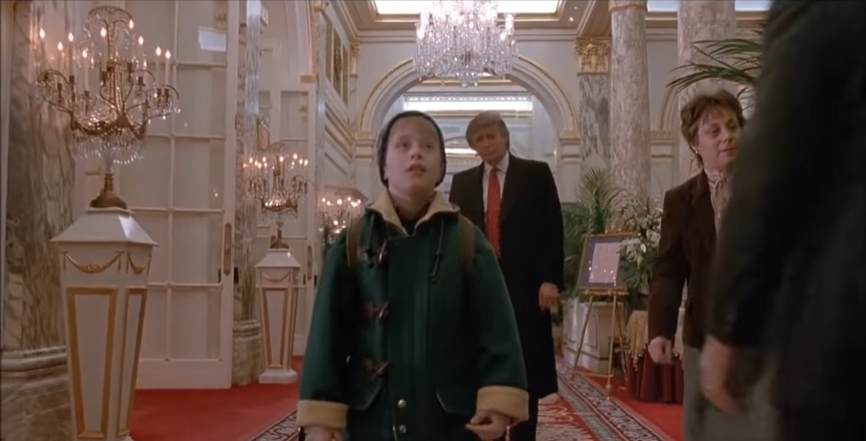 어릴적에 이 장면을 통해 트럼프를 처음 봤는데, 당시 케빈한데 길을 가르쳐주고 그 애를 뒤에서 마치 이상한 동물을 쳐다보는 듯한 모습이 맘에 안 들어서, "뭐야, 저 아저씨. 기분나빠."는 생각이 들었음. 말그대로 트럼프 자신이 영화에 나오고 싶어서 억지로 찍어서 넣은 장면이라 삭제해도 별로 영화에 큰 영향이 없어보이는 장면.