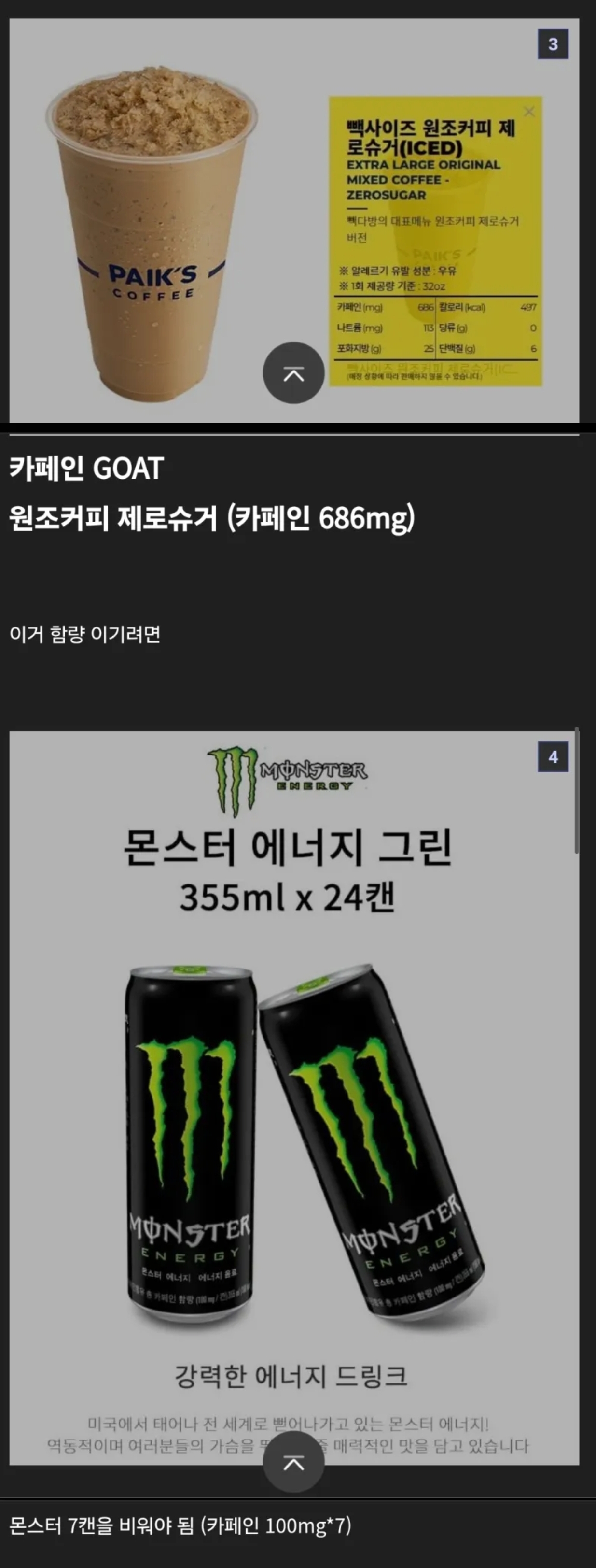 어지간한 커피 한잔이 몬스터에너지보다 카페인 많음 ㅋㅋ