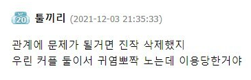 커플 뇨속들.. 게임 커뮤니티마저 빼앗아 가느냐..@@^^!! | 25.03.13 20:35 | | |
