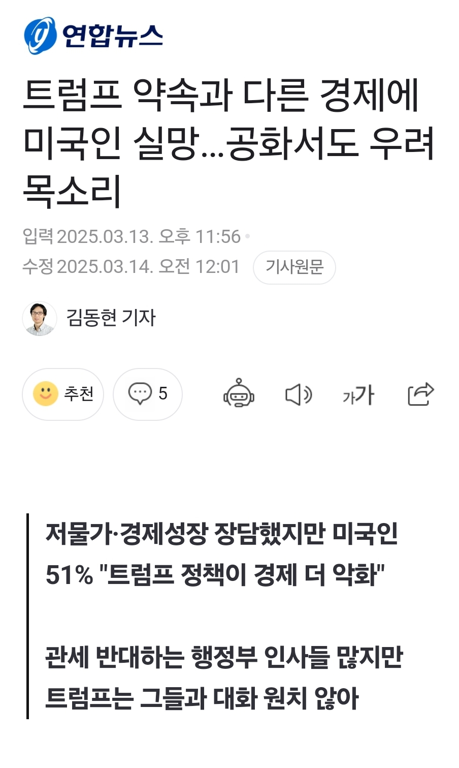 직접세를 내리고 부족분을 관세로 충당한단 이야긴 사실상 서민증세 부자감세인 것 | 25.03.14 01:50 | | |