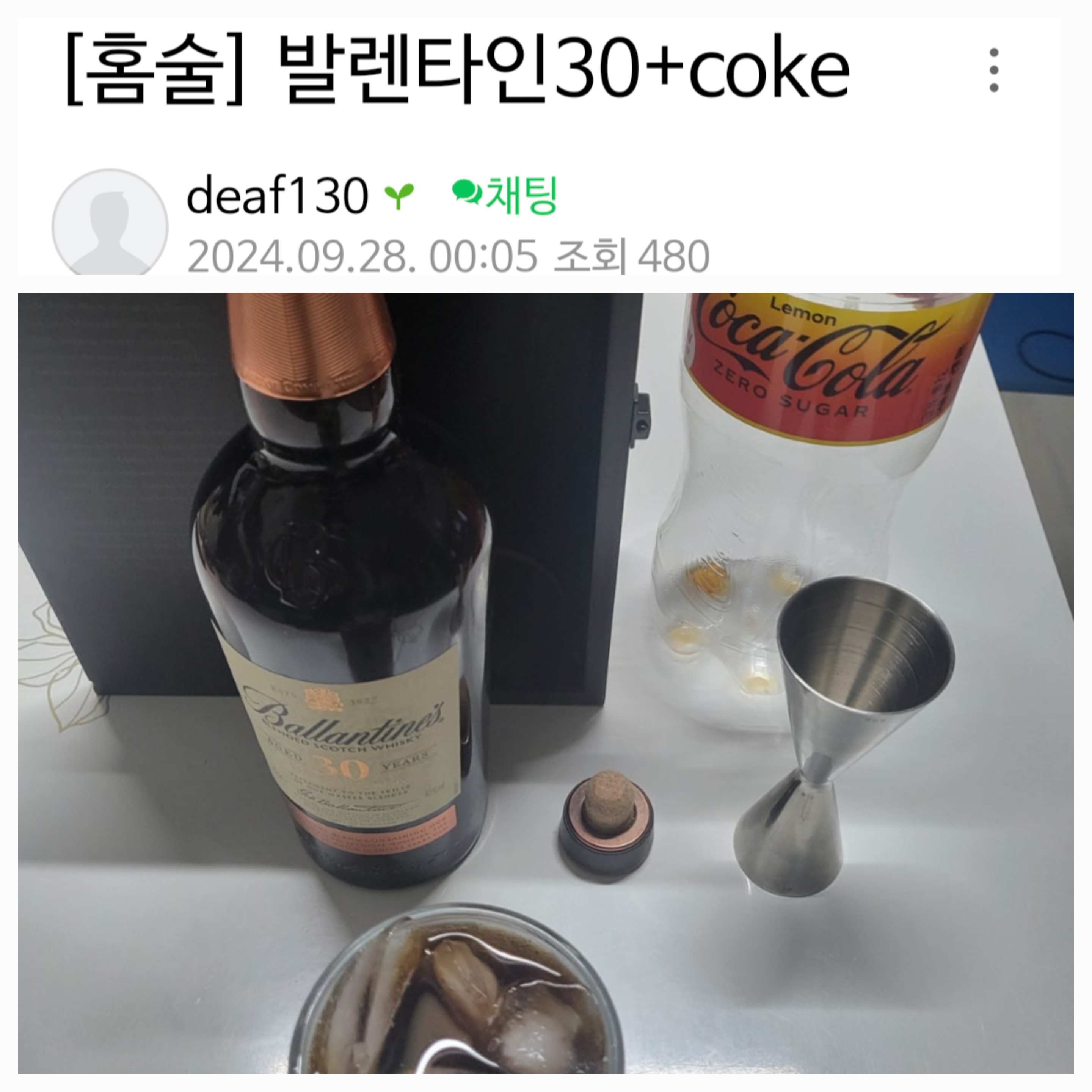 누가 스테이크를 먹을 때 스테이크보다 더 많은 소금을 뿌려... 근데 콜라는 위스키보다 더 많은 양을 넣잖아 이건 위스키가 조미료 아님? | 25.03.14 09:21 | | |