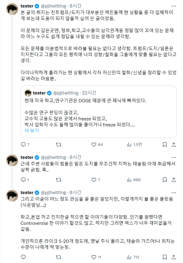 머스크님의 결정을 끌어안고 익사하는 수 밖에 | 25.03.14 09:57 | | |