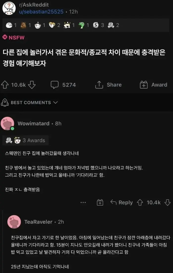 지들 문화라는 데서 얻을 수 있는 공감은 저들끼리만이라는 거임. 지들이야 그게 당연한 거니까 지들이 같은 스웨덴 남의 집 갔을 땐 밥먹을 때 되면 집에 가거나 했겠지 뭐. 근데 그럼 지들도 남의 나라 문화권에 가서 밥 안줘도 당연한게 되는 건가 그럼? ㅋㅋㅋ 여기서 사람들은 이거임. 아 네들 문화구나(ㅇㅇ) 근데 그게 안먹히는 이유는, 뭐 그딴 걸 문화라고 이해하라는 거임?? 이거임 ㅋㅋㅋㅋㅋ