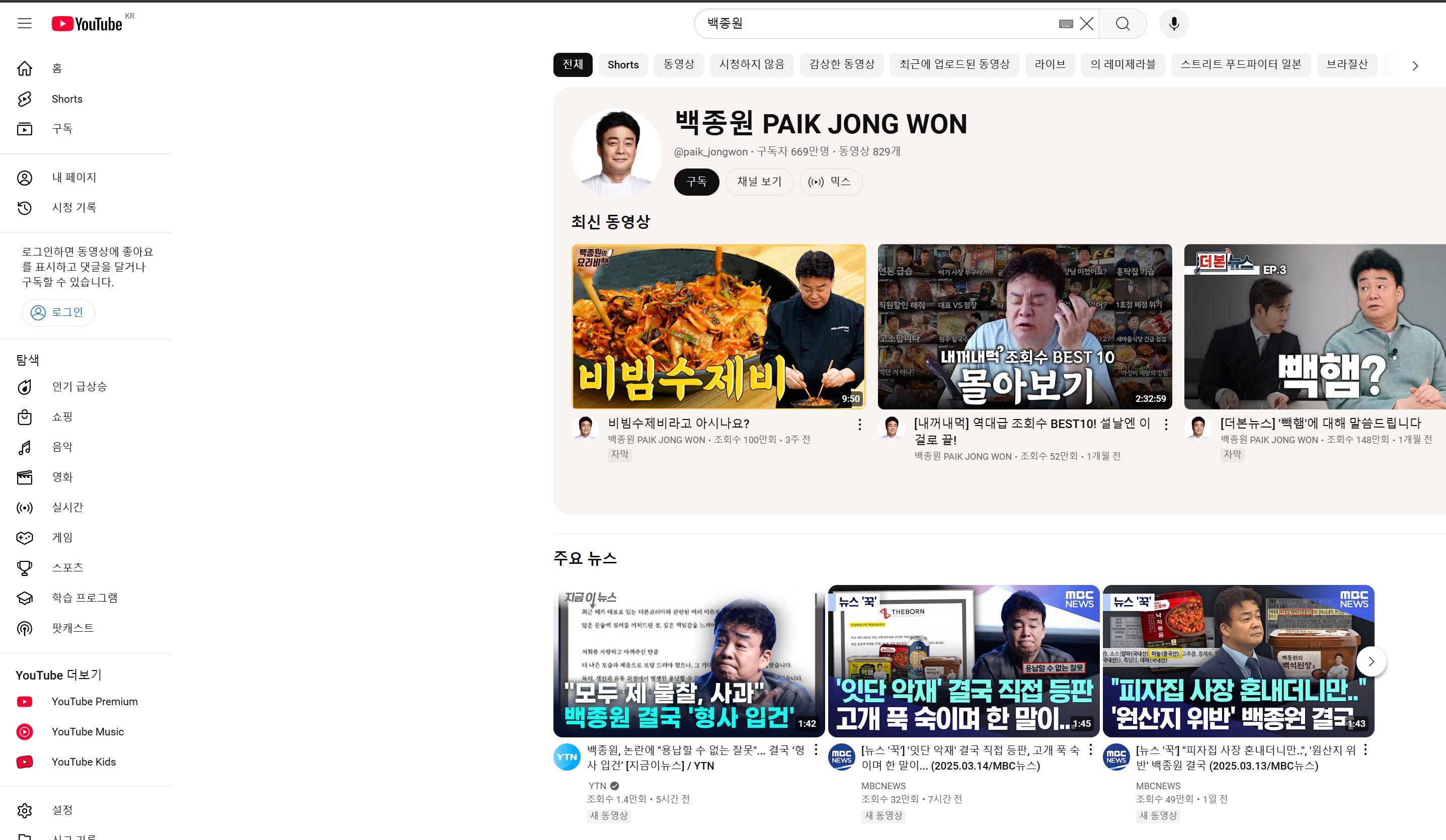 지금은 유투브 드가서 검색을 안해도 모든 메이져언론사가 백종원 기사가 다잇음 | 25.03.14 18:24 | | |