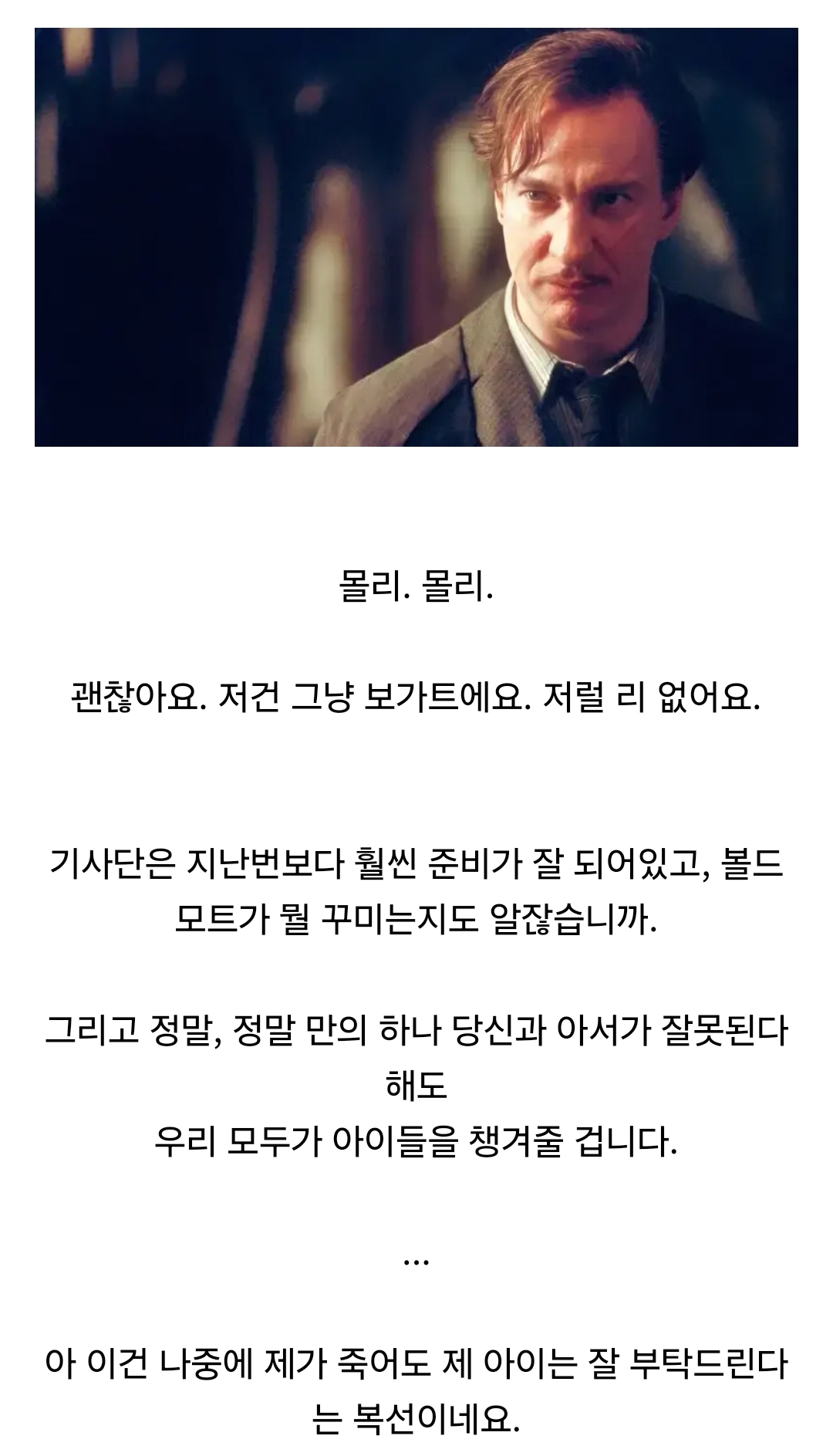 소중한 이를 잃는 아픔이나 야망은 잘 이해해도 정작 약자의 아픔은 이해하지 못했죠. 스네이프의 학폭이라거나 해리의 아동학대라거나. | 25.03.17 12:38 | | |