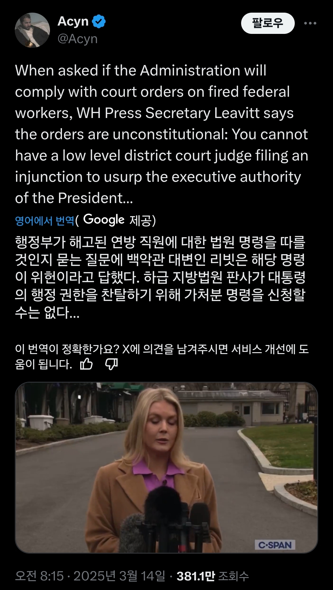 머스크가 저 판사 탄핵하라고 벌써 트윗 올렸음 | 25.03.15 11:15 | | |