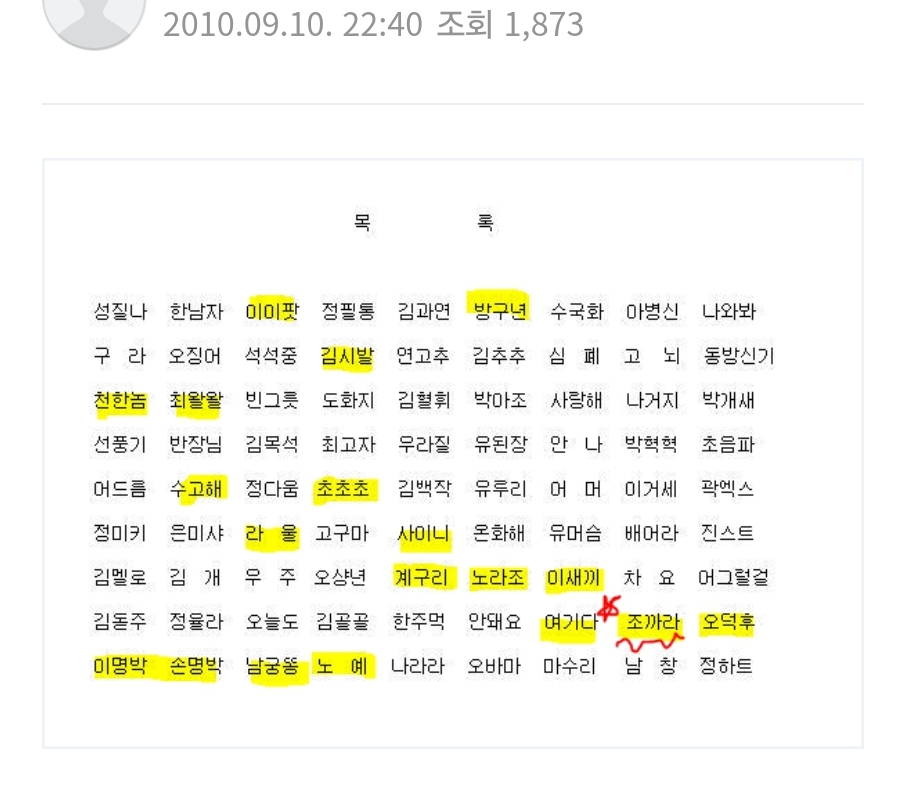 20년 30년 전부터 돌던 개명신청자 명단(이라고 주장하는) 짤에서 몇개만 추가한ㅋㅋㅋㅋㅋ | 25.03.15 15:31 | | |