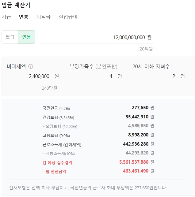 결혼하고 아이 두 명 있을 때 연봉 120억 실수령액이얌 | 25.03.16 09:53 | | |