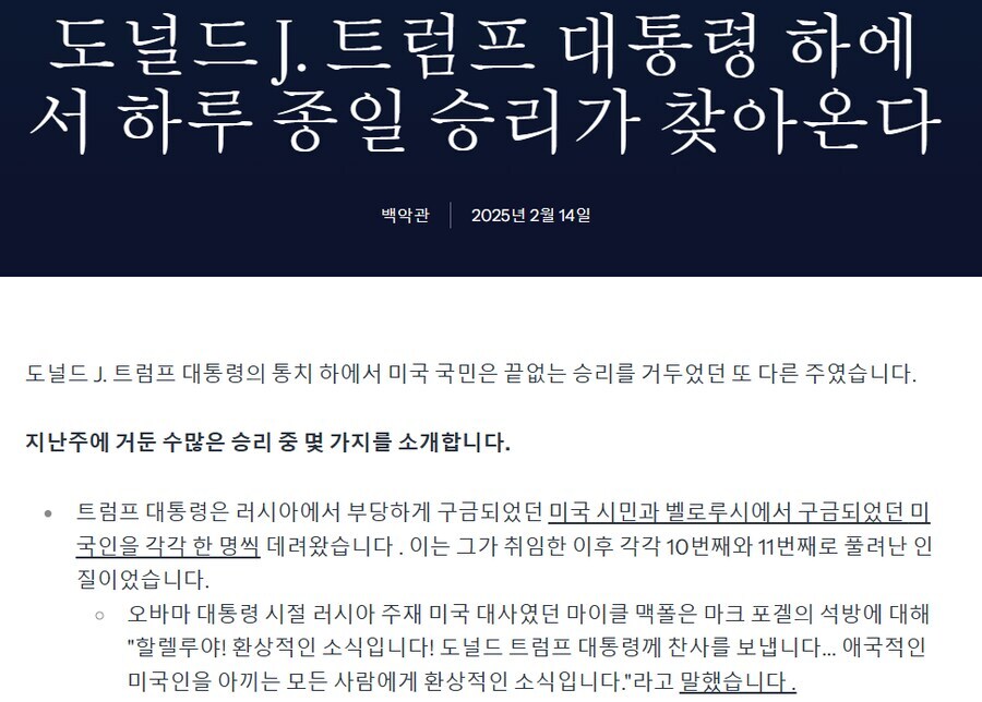 "트럼프 각하는 '진리의 화신'이며, 잘못은 오직 미국이 그의 위대한 지도로부터 멀어질 때만 벌어졌다." | 25.03.15 18:53 | | |
