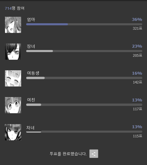 인기투표 보는데 엄마가 1위임 ㅋㅋㅋㅋㅋㅋ