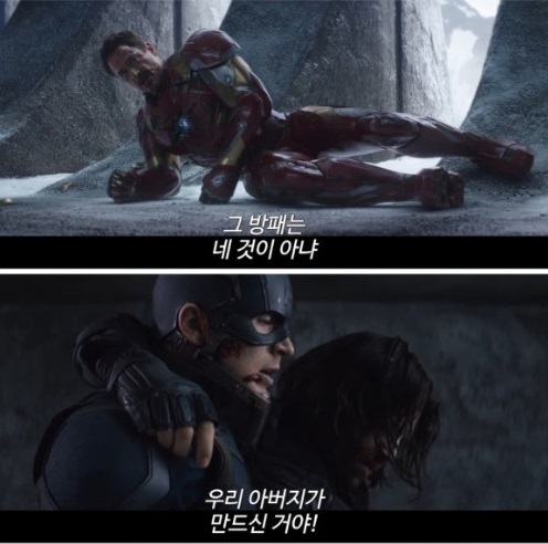 "진정해 캡틴. 이건 로키가 하자고 한 거야." "스타크. 너잖아."