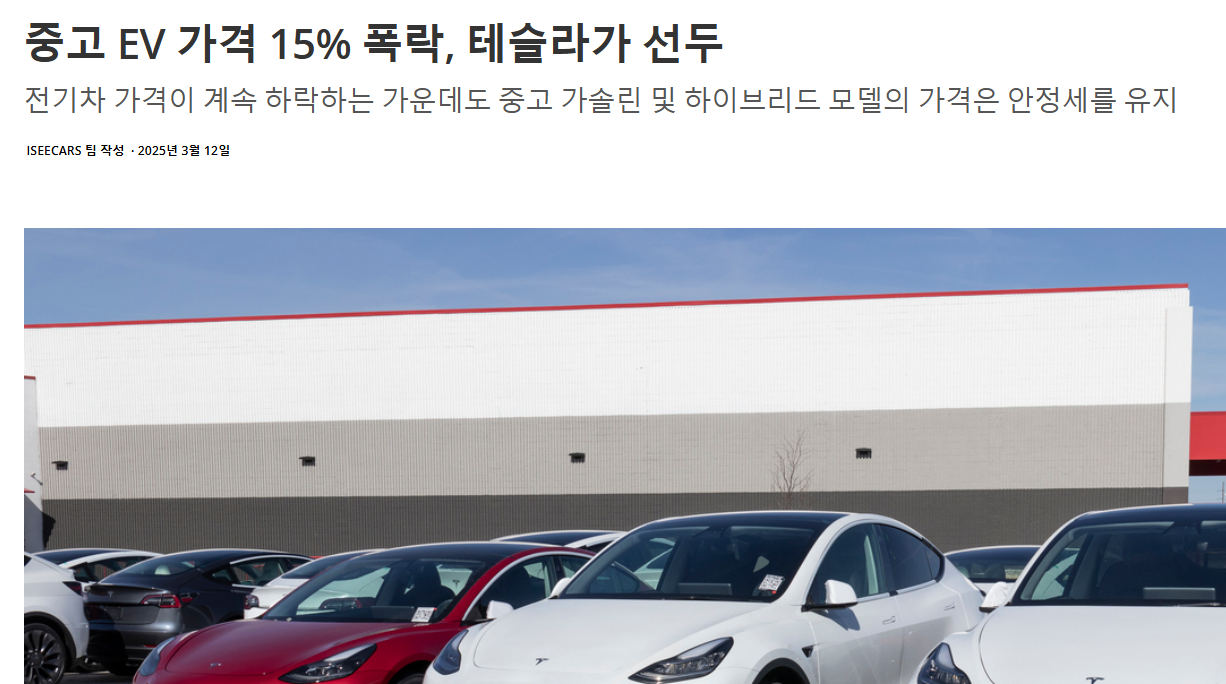 전기차가 내연기관 중에서 감가가 빠르긴 한데 그런걸 포함해서라도 미국에서 테슬라 중고차 가격이 심각하게 떡락중이라고 함