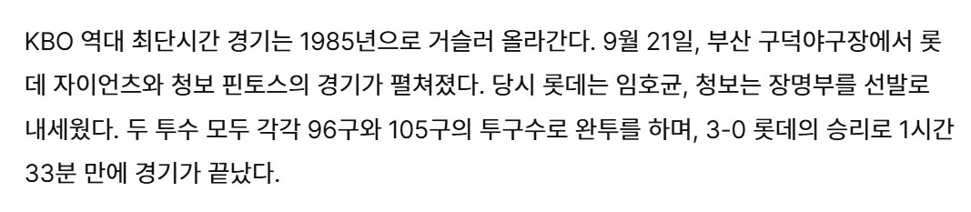 양쪽팀이 삼진, 병살로 누가누가 못하나 하다가 솔로홈런 딱 한방으로 승부나면 가능? | 25.03.17 13:09 | | |