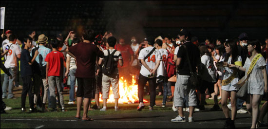 진정하고 일단 먹던 고기랑 불판 정리하고 밖으로 나오면 됨. 그리고 경기장 주변 돌아다니다보면 선수들 버스 나오는 길 있을텐데 거기서 불타고있는 버스에 구워먹으면서 선수들 몰매 맞는거 안주삼아 구경하면됨.
