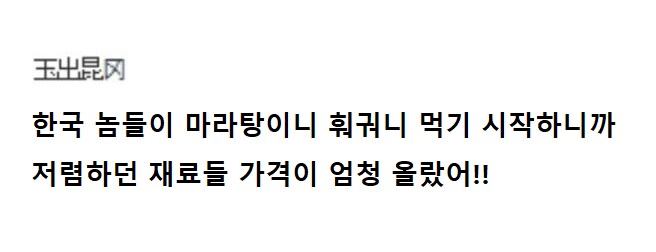 경제규모가 커지면서 육류 해산물 소비량 다 올려놓고 훠궈 가지고 징징대니깐 존나 꼬운데