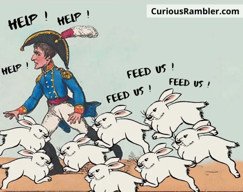 그러나 풀어놓은 토끼들이 예상과 달리 도망가지 않고 나폴레옹 일행에게 달려들었다 이유인즉 토끼들이 야생이 아닌 길들여진 집토끼들이었기 때문에 토끼들은 나폴레옹과 일행을 먹이를 주는 사람으로 착각하고 몰려들기 시작했던 것이었다