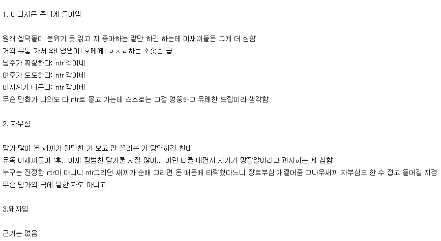 ㄹㅇ부심 부릴게 없어서 NTR부심을 부리냐ㅋㅋㅋ 인생에서 자랑할게 어렸을때 NTR 본거라니ㅋㅋㅋ