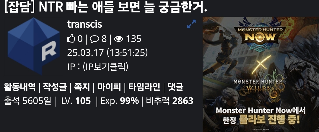 뭐 경험담인가봐.. 사람들은 본인의 경험으로 세상을 바라보잖아. | 25.03.17 14:07 | | |