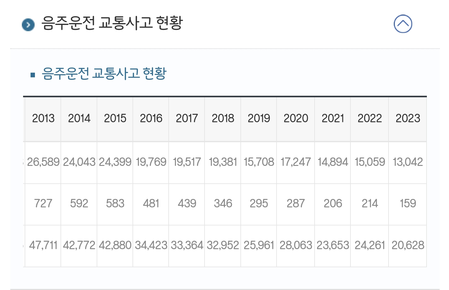 조금씩 줄어들기는함 위에부터 건수 사망 부상(단위 명)