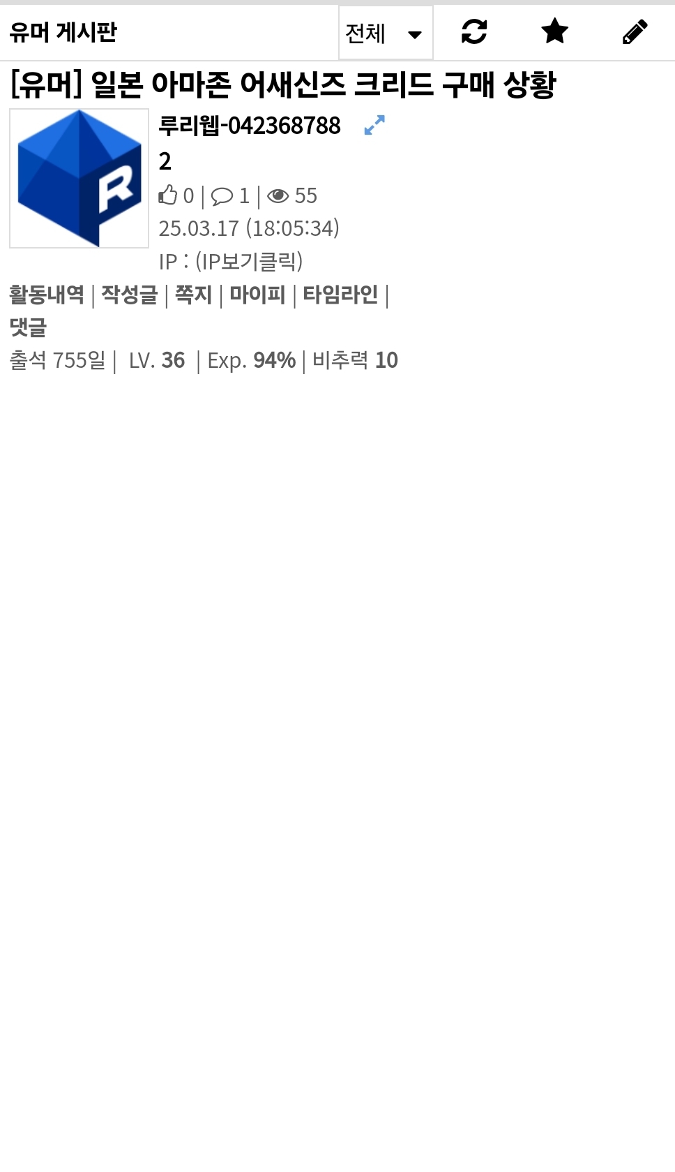 일본 아마존이랍시고 찍어 올리던데 | 25.03.17 18:12 | | |