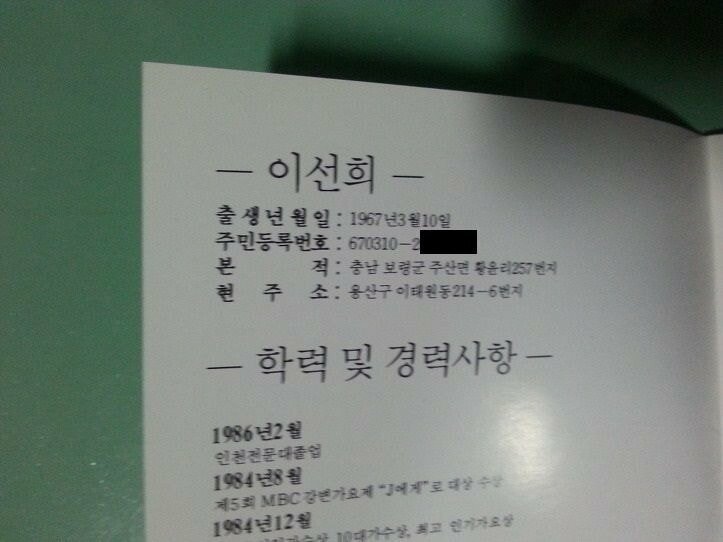 음반에 주민번호도 기록된...