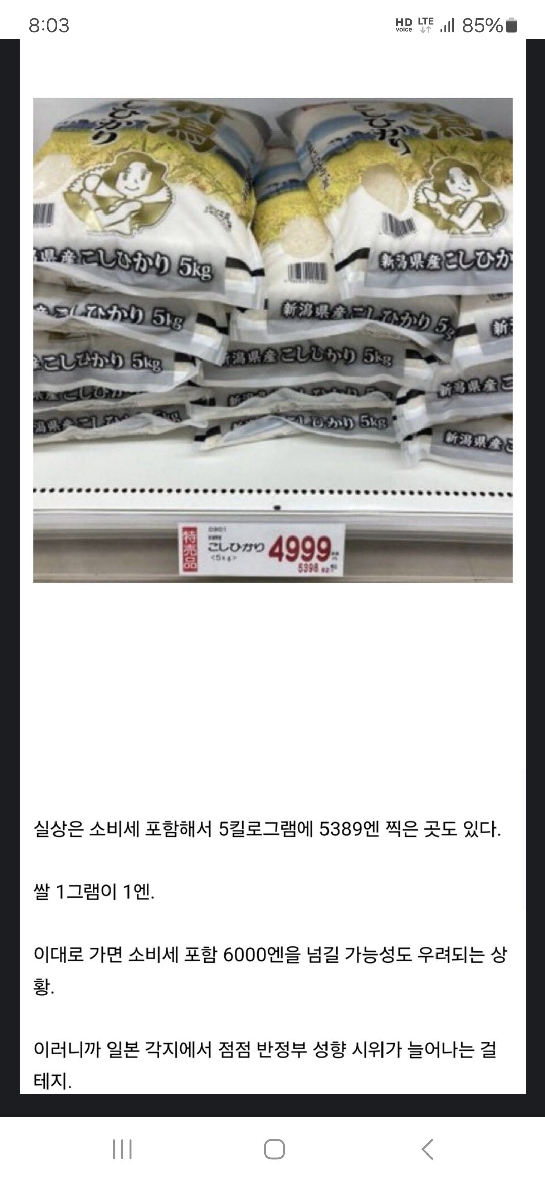 관세 붙고 해서 가격이... 일본 교무슈퍼에서 미국산 칼로스쌀이 5키로에 3700~3800엔임 | 25.03.18 08:19 | | |