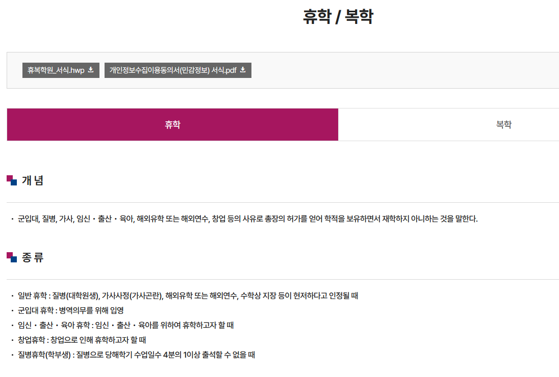https://www.jbnu.ac.kr/web/academic/information/sub01.do 전북대 학칙은 질병휴학같은거 다 일반휴학으로 쳐서 사유 있는거만 받나본데 | 25.03.18 08:28 | | |