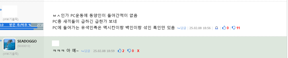 두 개는 따로 분리될 수가 없음. 애초에 성차별 하지말자, 인종 차별 하지말자 로 시작된게 PC임 | 25.03.18 16:09 | | |