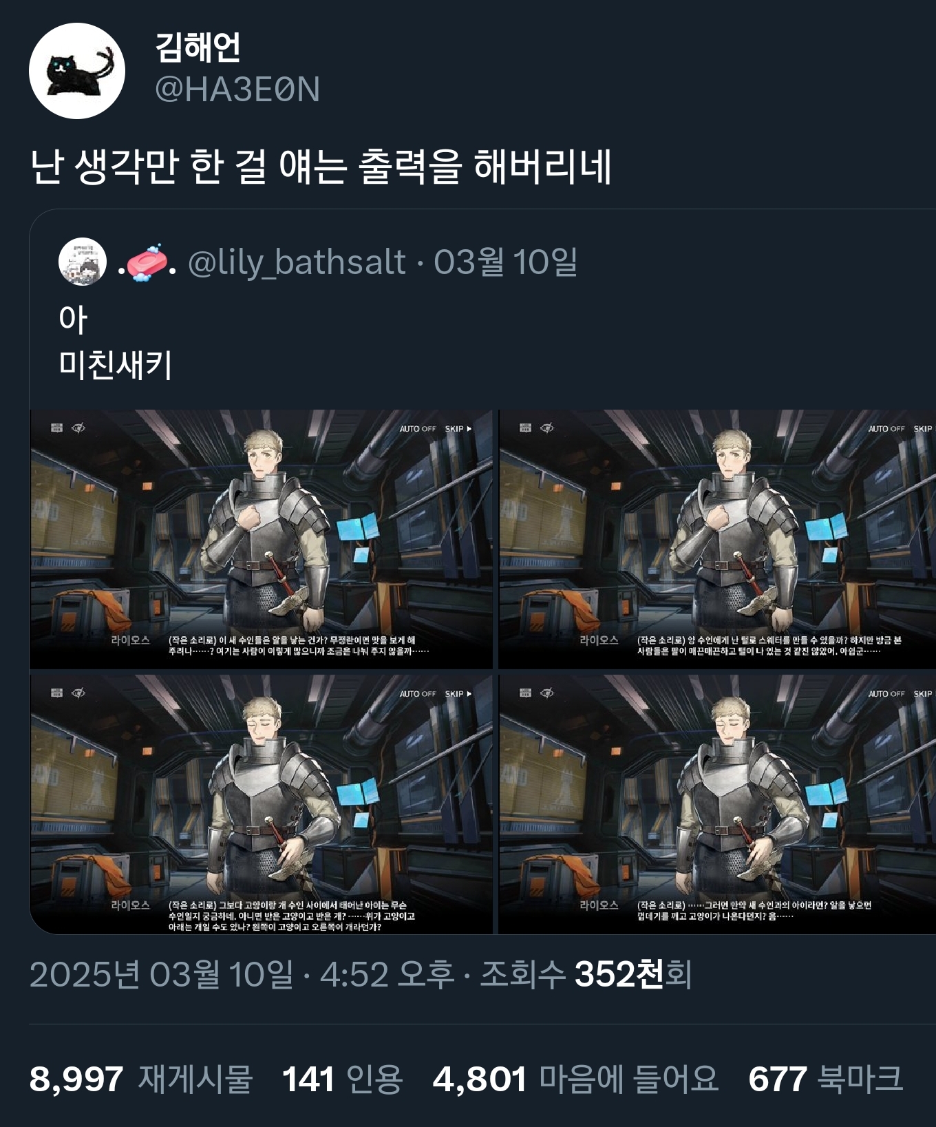 힘멜 : 해야하는 일 라이오스 : 그냥 일상 | 25.03.18 18:04 | | |