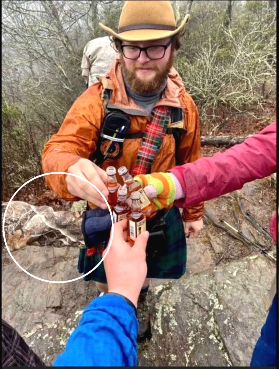산에 올라갈 때는 주류를 챙기지 말고 밝게 빛나는 형광색 부분이 있는 옷을 입읍시다 여러분