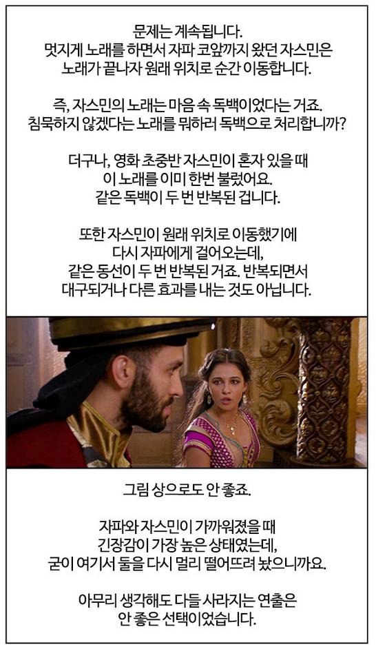 내가 기억하기론 영화에서 딱 두번 불렀던걸로 기억하는데 두번다 전 후 사정이랑 아무 상관없이 그냥 뜬금포로 나옴 ㅋㅋㅋㅋㅋ 노래가 '나는 더이상 침묵하지않고 외압에 맞서 싸우겠다!' 이런 가사인데 실제로 보여주는게 아무것도 없음 뭔가 심경의 변화나 행동의 변화가 있어야되는데 아무것도 없어 ㅋㅋㅋ 솔직히 그냥 저부분 도려냈어도 영화가 아무 문제없이 매끄럽게 이어짐 ㅋㅋㅋㅋㅋㅋㅋ 그래서 영화관에서 보면서 인도영화 생각나더라 사건이랑 아무 상관없이 일단 노래한곡 뽑고 시작하는거 ㅋㅋㅋ | 25.03.19 14:27 | | |