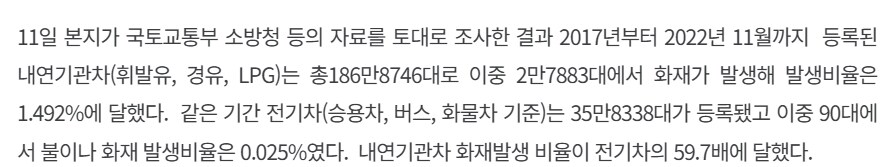 내연기관차랑 화재비율 비교하기 무리인게 전기차들은 비교적 연식이 얼마 안된것들인데 내연기관은 낡은 차들도 많아서..