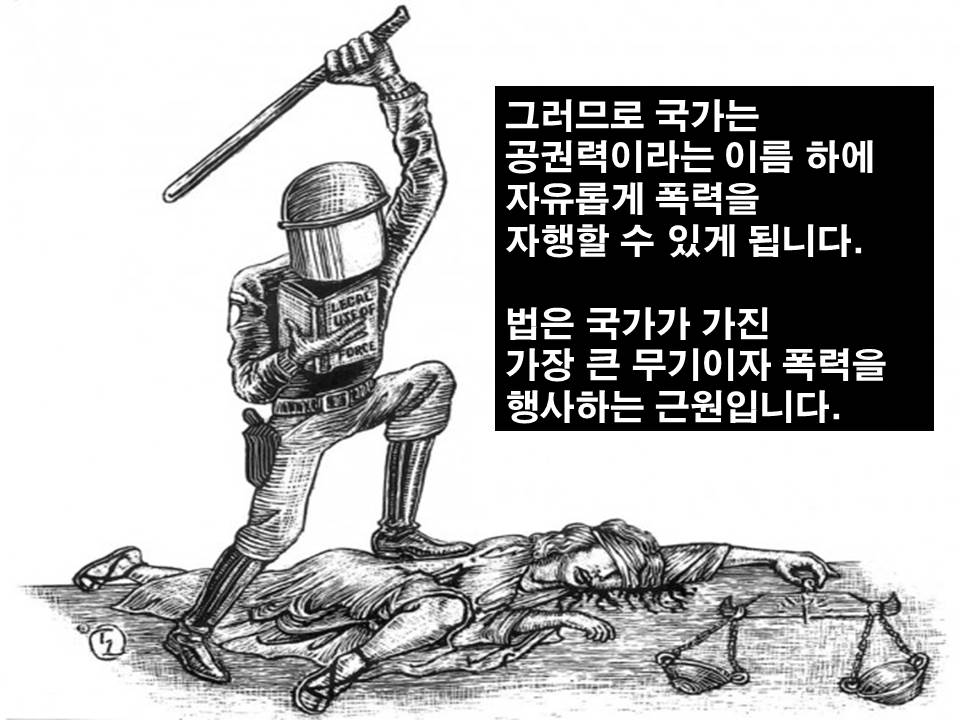 공권력이랑 합법적 폭력의 차이는 종이 한 장보다 더 얇은 걸 모르네