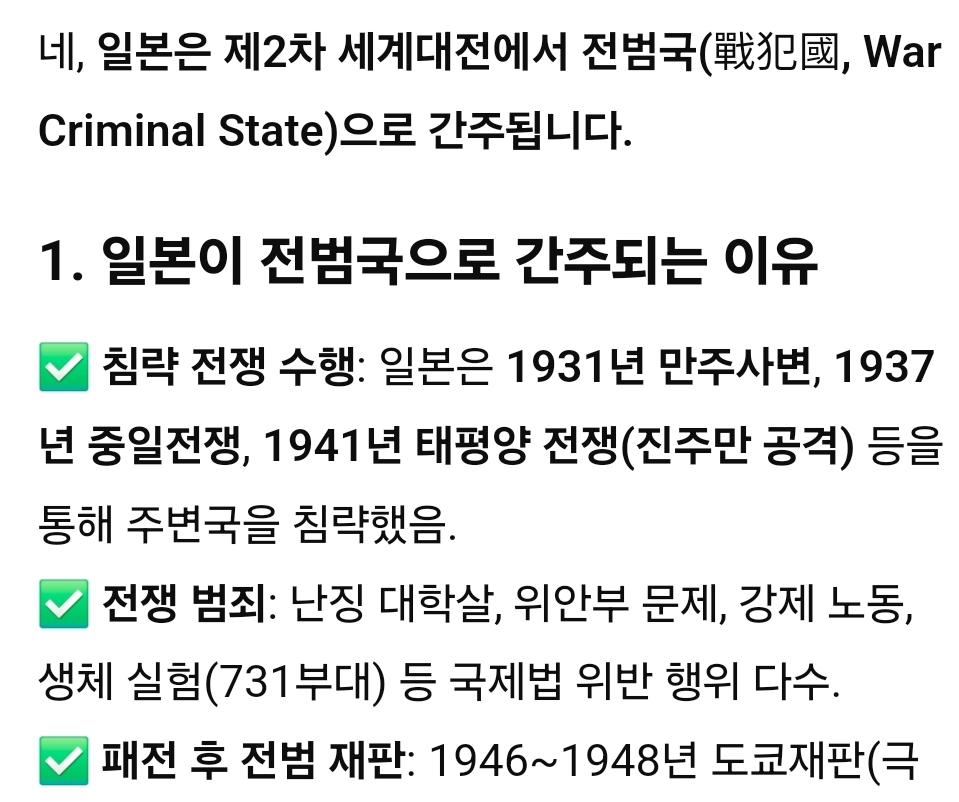 설파 패전이랑 전범을 동일시 하는거야..? 패전하고 군대 해산당한 역사상 다른나라들은 걔네들도 다 전범국이라 그랬음? 전쟁범죄란 개념 자체가 생긴게 몇백년도 안됐을텐데 | 25.03.20 00:33 | | |