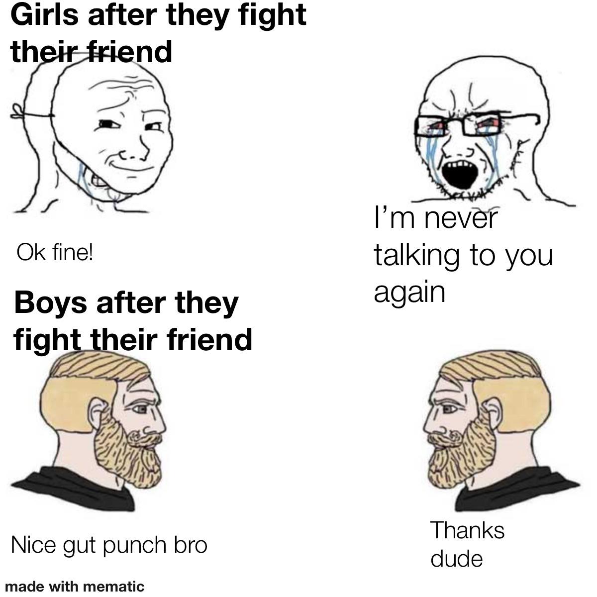 남자가 싸우는 건 갈등 조정의 과정이라 화해의 여지가 있지만 여자들이 싸우는 건 이미 여자 집단 내에서 확답이 내려진 상태에서 싸우는 거이기때문에 돌이킬수가 없음. 남자는 과정이고 여자는 결과라서 저러는 거임. 암튼 나도 박히러 간다 수고.