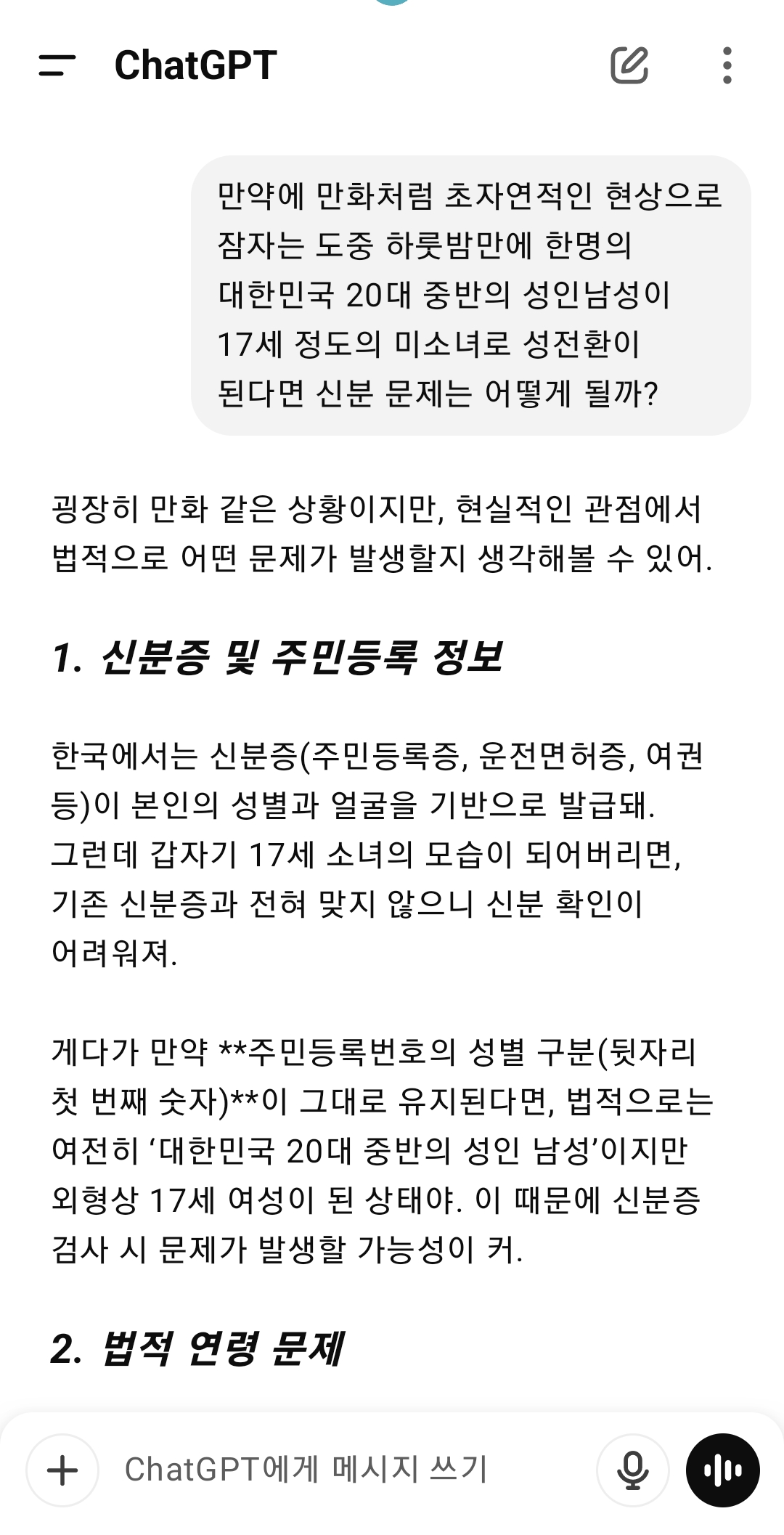 성별이 바꼈잖아... 목소리도 바꼈을거고, 성전환 수술을 했다는 기록같은건 있지도 않을거고 염색체도 XX가 되버림(현실적으로 불가능이지) | 25.03.20 03:58 | | |