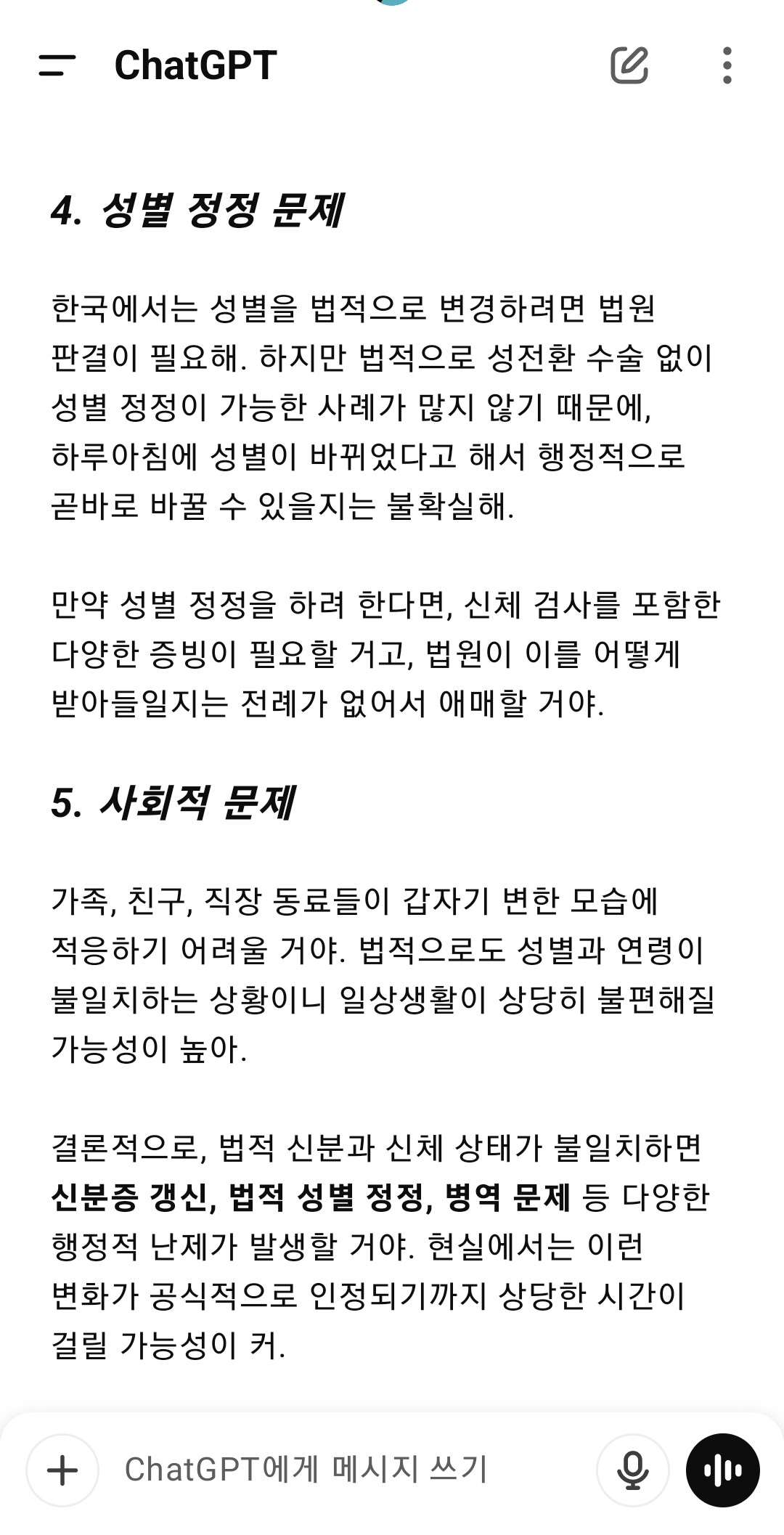 이름만 바꿔도 온갖 관공서 은행 통신사 서류 전부 수정해야되서 힘들어 죽겠다는 말있는데 성별바뀌면... 더하면 더하지 덜하지는 않을듯.