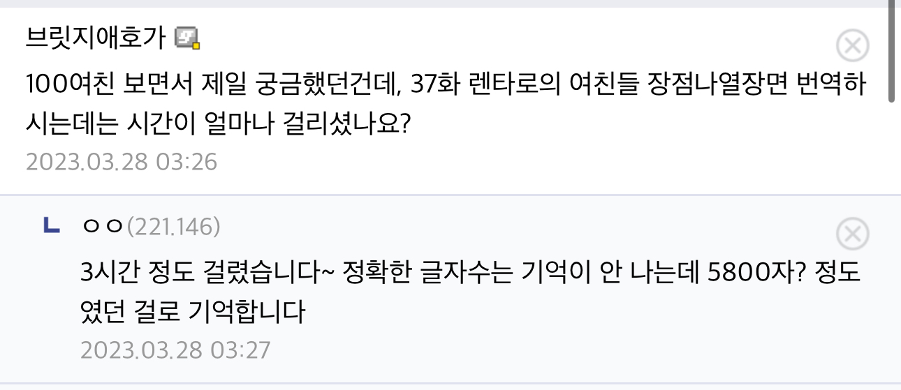 역자 피셜 3시간 5800자 중노동 ㅋㅋㅋㅋㅋ | 25.03.20 08:10 | | |