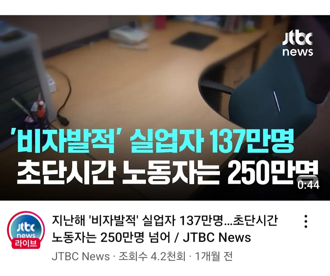 실업자 137만 그냥 쉰다 120만 초단시간 노동자 250만 거기다 임금 체불 2조(미국에 7배) 작년 최저임금 상승 1.6퍼 인상 이러니 내수는 더 바닥치고 망해가는거지