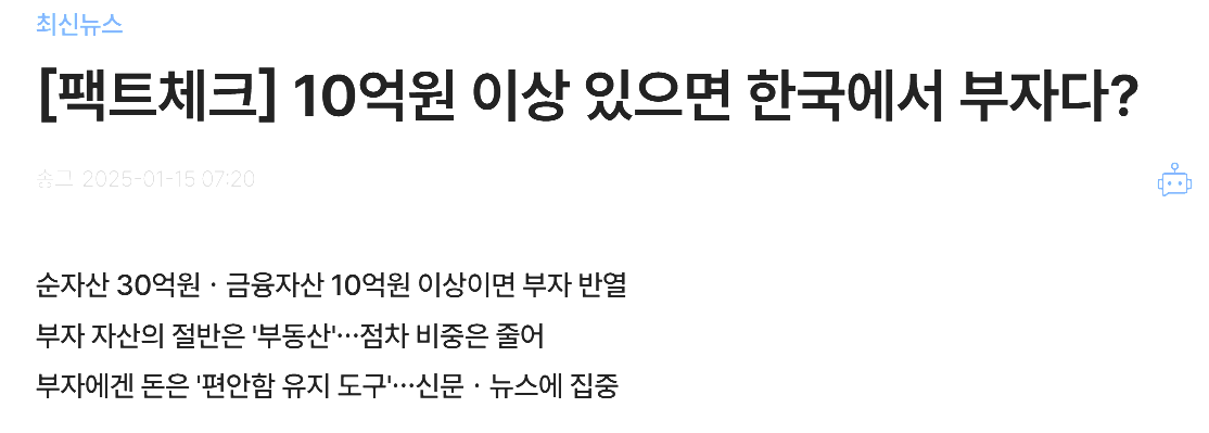현시점에선 30억이 부자 커트라인처럼 여겨지기 때문에