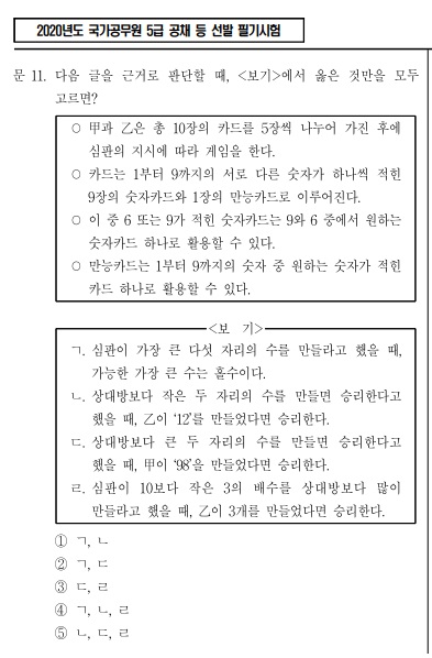 너나 좀 모르면 뻘소리 말고 가만히 있어라 위 문제가 실제 20년도 5급 공채 11번 문제다 애초에 5급 psat은 특정 사람들만 아는 지명, 문구, 단어 같은거 들어가면 안되서 일반인들이 알만한 걸로만 문제내야된다 저 짤 뒤에 제목 짤린거 보이지? 거기에 모의고사란 단어 들어가 있을거다 제발 잘 모르면 시비걸지 말고 걍 지나가