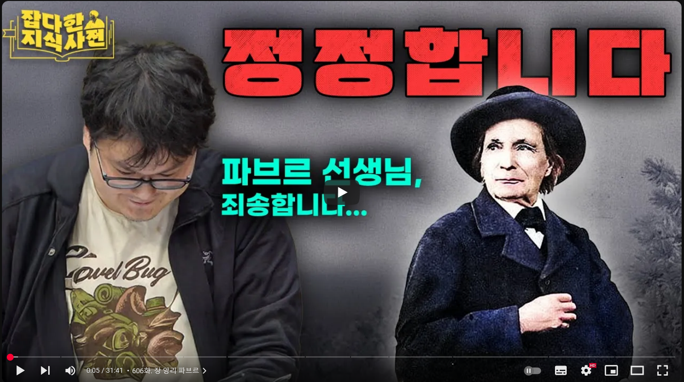 외국에서 국제학교 애들이랑 애기할때 파브르 아는 애들이 한명도 없더라, 곤충에 관심 있는 애들 아니면 대부분 모를듯 | 25.03.20 17:53 | | |