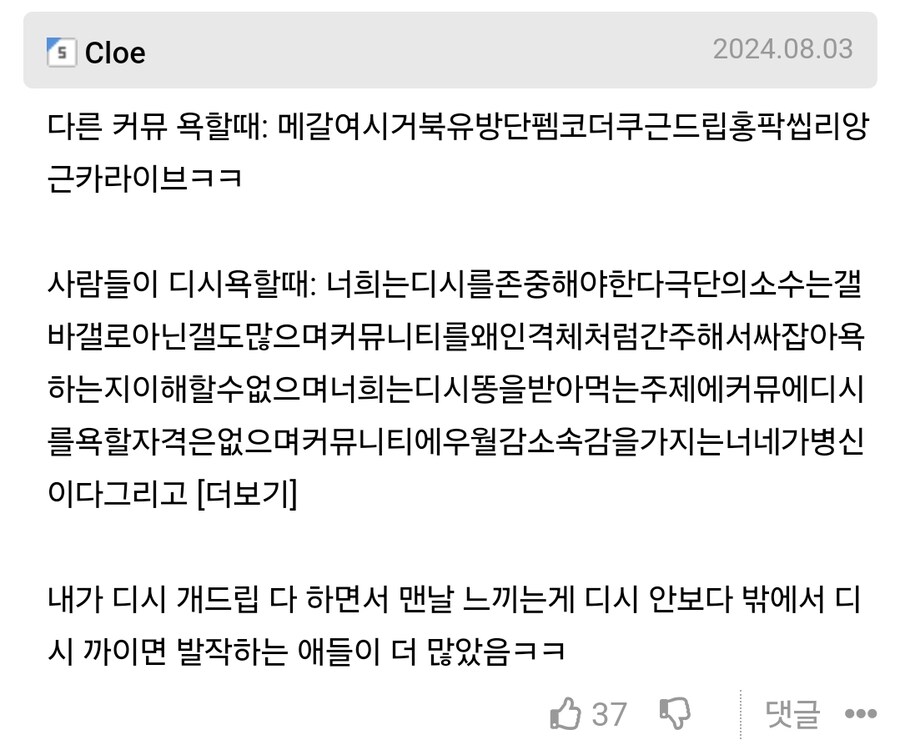 커뮤니티에 소속감 느끼니 저런거임 ㅉㅉ..