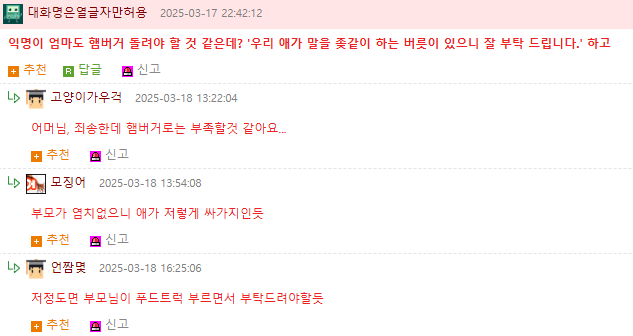 우리 엄마가 햄버거 돌렸으면 좋겠다 데헷 | 25.03.20 20:19 | | |