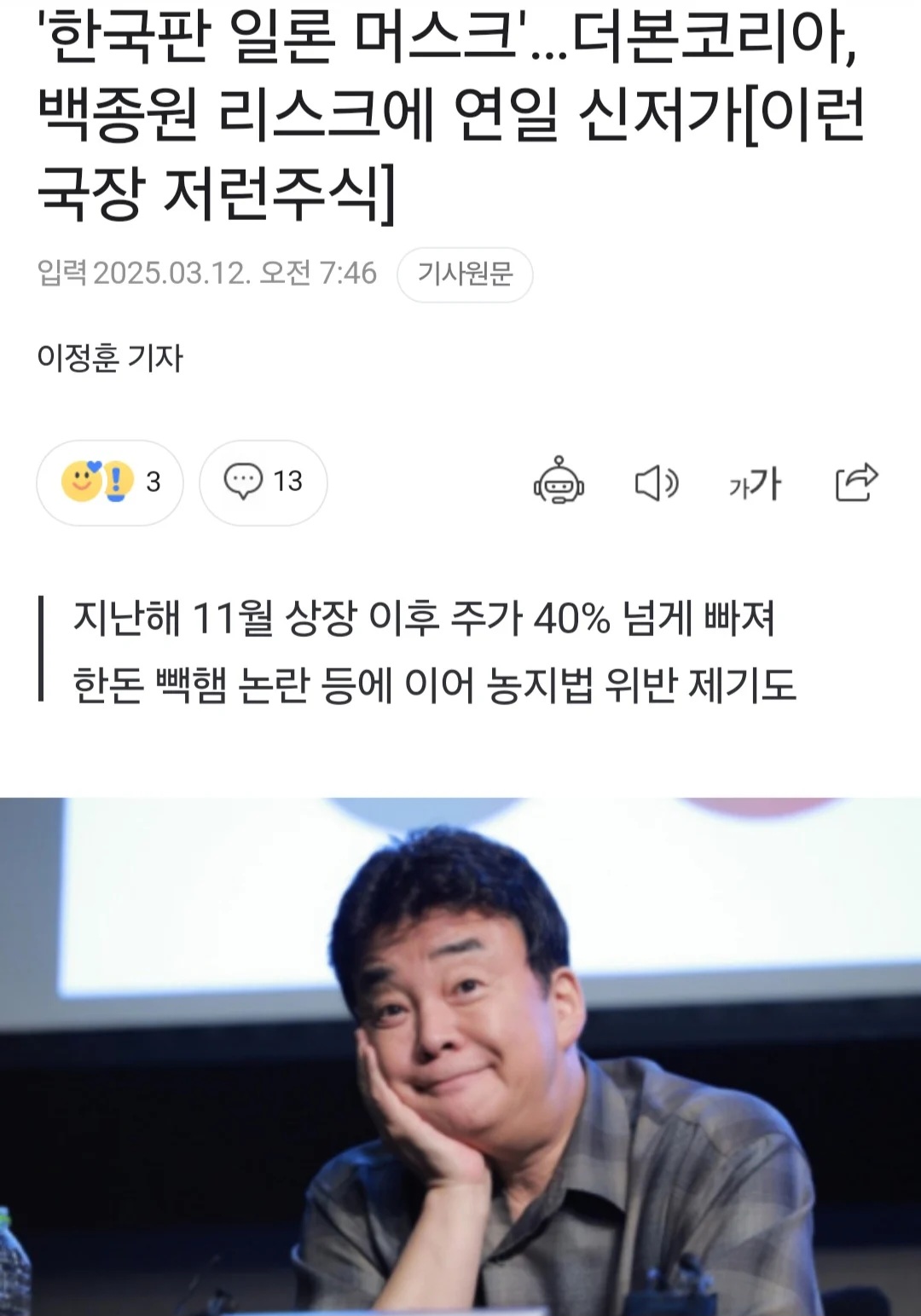 정확히는 지금 터지는 모든 논란들이 '예전부터' 논란이 나왔는데 팬덤 파워로 조기진압 되던거임. 근데 레미제라블,빽햄 사태로 팬덤이 등을 돌리니까 이렇게 되는거고. 당장 원산지 조작 논란도 7~8년 전부터 뉴스에 있더라. | 25.03.20 20:27 | | |