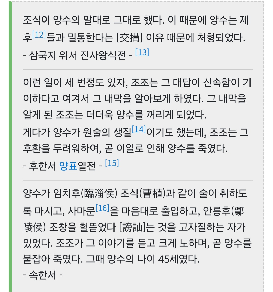 이게 정사에서 양수가 숙청된 이유라는데 이 정도면 충분히 막나간것 같음... | 25.03.20 21:14 | | |