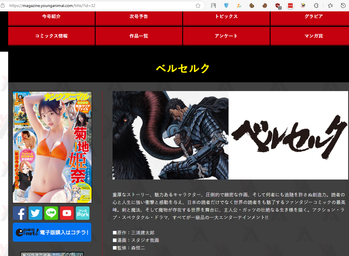 무슨 헛소리지??? 베르세르크는 영 애니멀에 연재되고 영 애니멀은 남성향 청소년지임 그리고 니가 올린건 라라디럭스라는 전혀 다른 잡지고 | 25.03.21 00:56 | | |