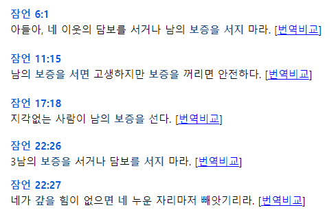 네 이웃을 네 몸과 같이 사랑하라는 성경에서도 보증은 하지말라고 여러번 말하니 뭐ㅋㅋㅋ