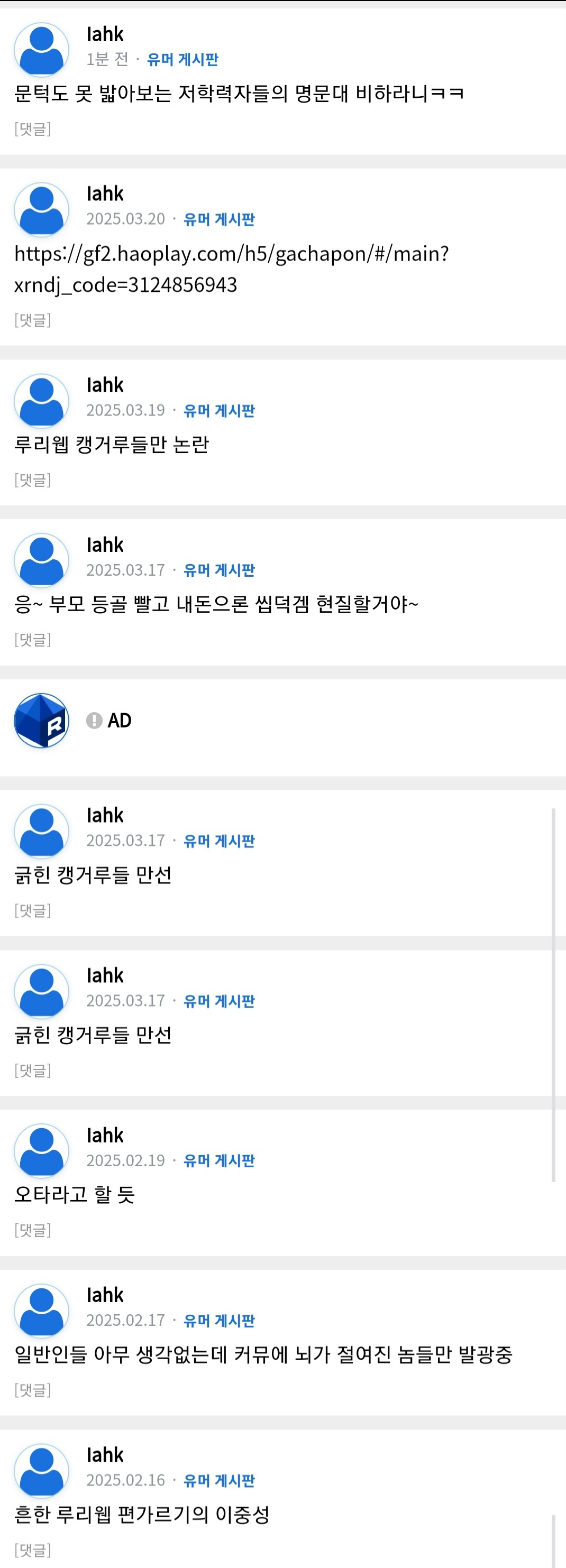 못난 어그로 같은데 차단이나 박아야겠음ㅋㅋ | 25.03.21 08:49 | | |