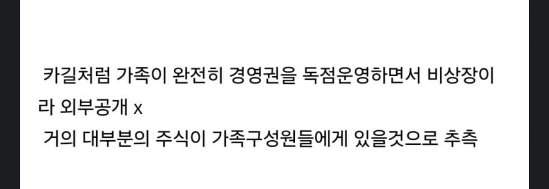 저건 비상장회사라 가족경영이 합리화되지만, 한국의 재벌은 상장회사이면서도 가족경영이라 문제됨. | 25.03.21 09:56 | | |